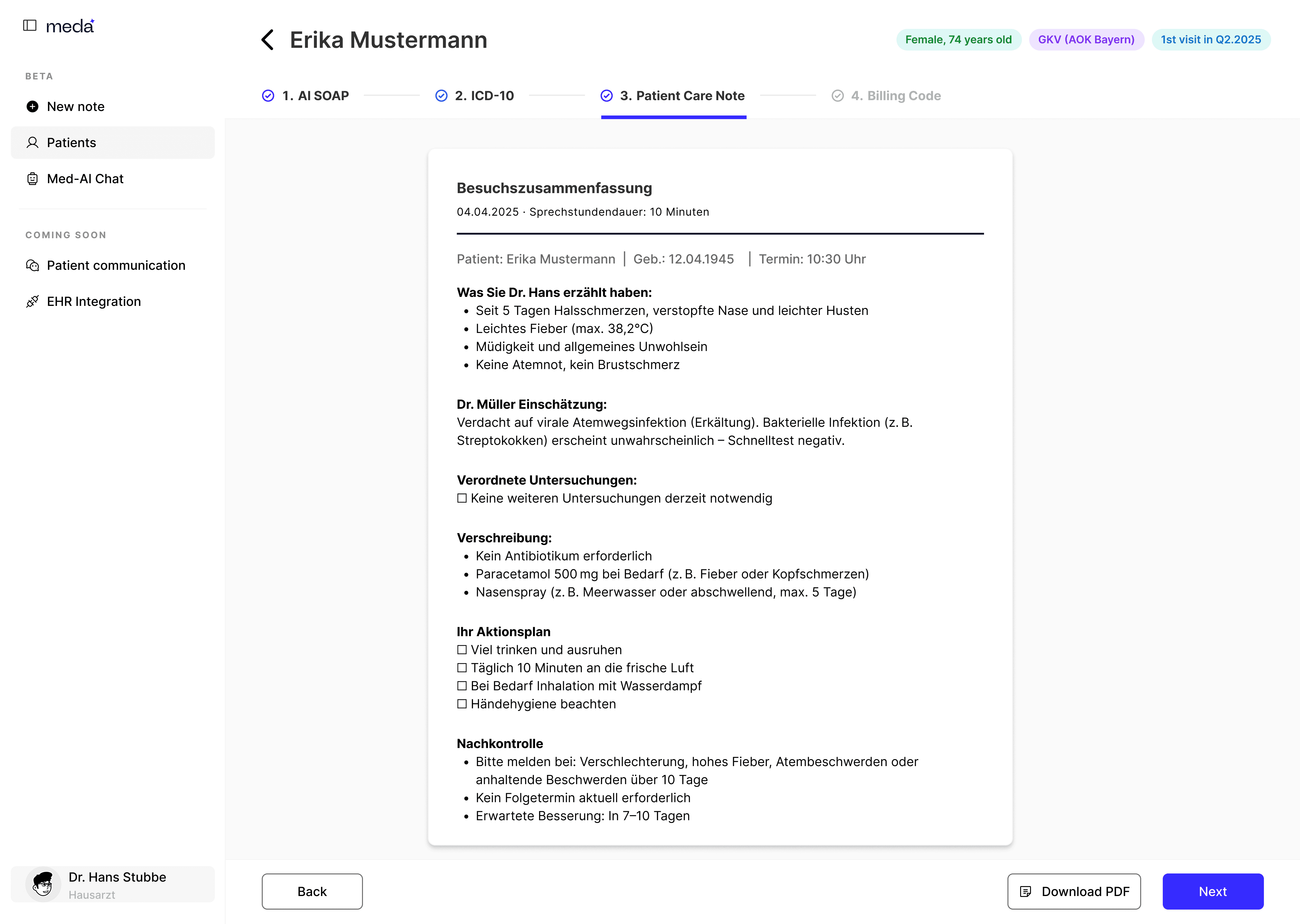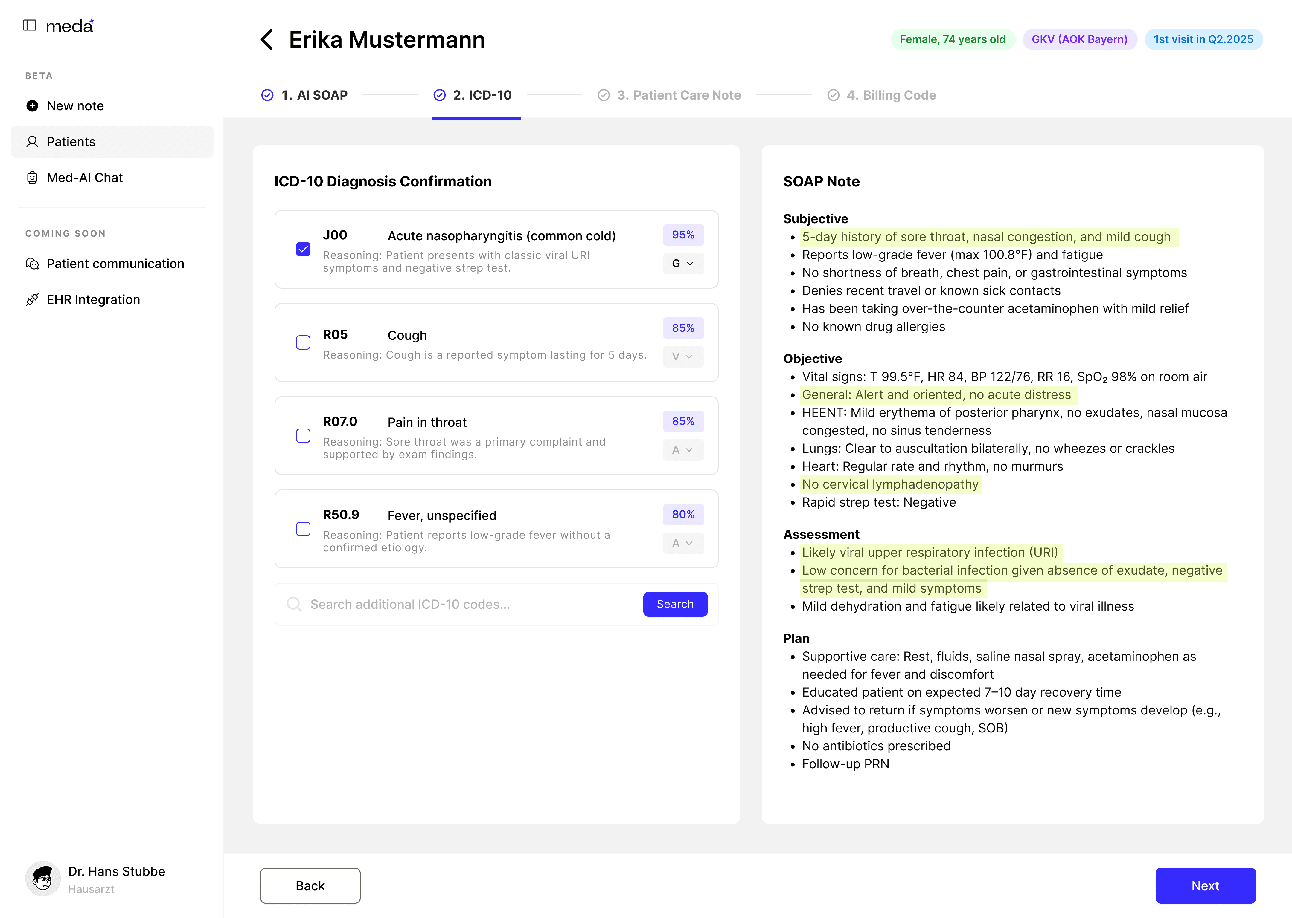 Konzentrieren Sie sich auf Ihren Patienten, während die KI die gesamte Dokumentation übernimmt